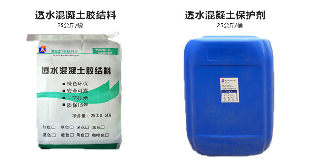 透水混凝土膠結料是以高強度硅酸鹽水泥為基料,配以多種助劑增加強度與粘結力組成的粉狀料,并可按用戶要求加入無機耐磨顏料,使其和碎石、水按照一定比例混合后,組成不同色彩的水混凝土面層